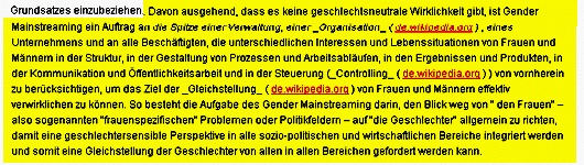In ihrer Antwort zum Thema "Gender Mainstreaming" ...