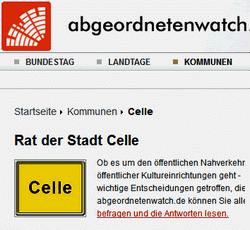 Von Lucie Rudolph Nach einem Vortrag über abgeordnetenwatch.de an der Volkshochschule in Celle waren sich eigentlich alle Zuhörerinnen und Zuhörer einig: Dieses Projekt wäre auch für Celle ein wichtiger Schritt in Richtung Transparenz! Ein kleiner Förderkreis war schnell gefunden, und bald wurden die dringendsten Fragen diskutiert: Wer macht Werbung, wie machen wir Werbung, wie kommen wir an Spenden und wer wäre potenzieller Spender? Wäre es nicht toll, die Stadt Celle würde sich selbst für dieses Projekt interessieren, es unterstützen, es möglicherweise finanzieren und sich damit selbst für Bürgernähe und Transparenz in der Kommunalpolitik einsetzen? Immerhin wurde Celle der Titel "erste Bürgerkommune Deutschlands" verliehen! Und das bedeutet: