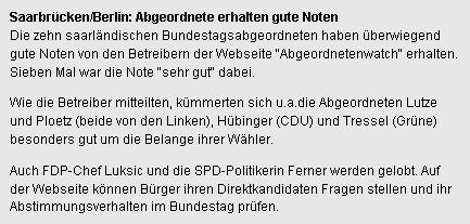 Die Antwortquote der saarländischen MdB ließ inm vergangenen Jahr wenig zu wünschen übrig. Bei der Zeugnisvergabe glänzen die Volksvertreter des kleinsten deutschen Flächenlandes.