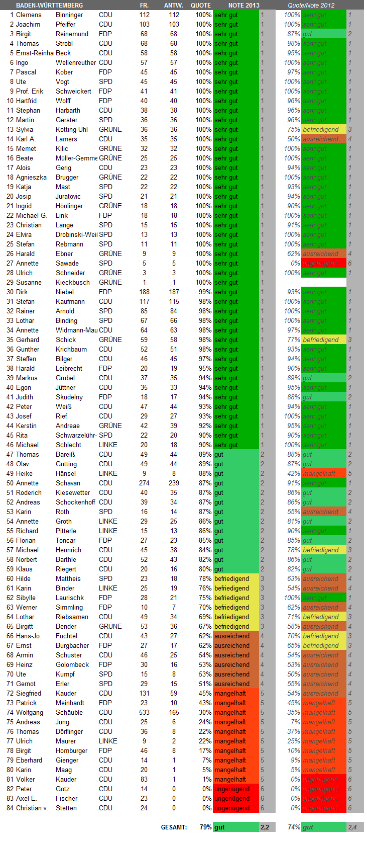 - 24.7.2013 Noten für die Bundestagsabgeordneten aus Baden-Württemberg nachgetragen.