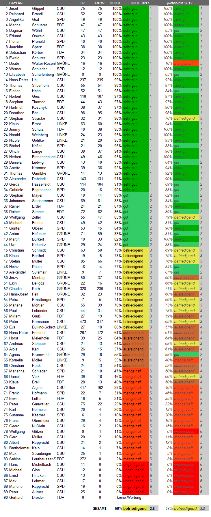 - 26.7.2013: Noten für die Bundestagsabgeordneten aus Bayern nachgetragen.