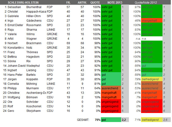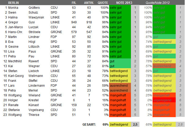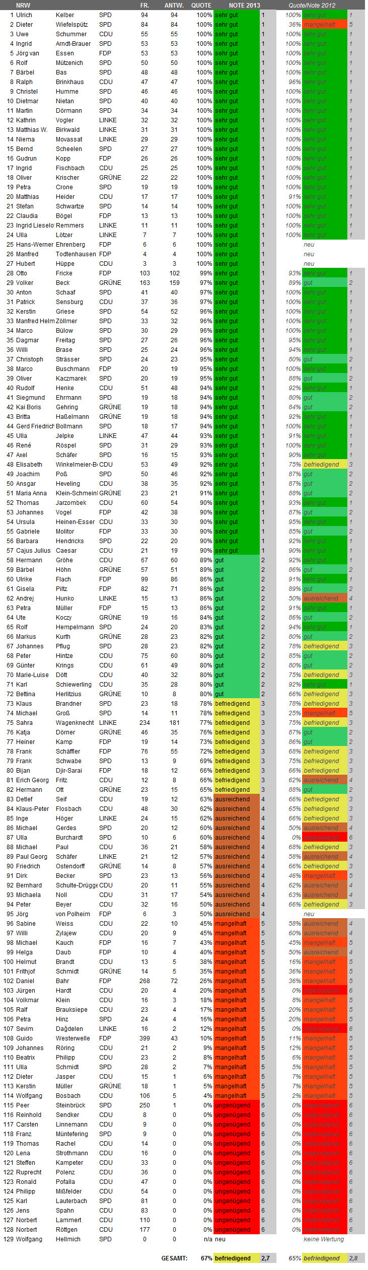 - 17.7.2013 Noten für die Bundestagsabgeordneten aus NRW nachgetragen.