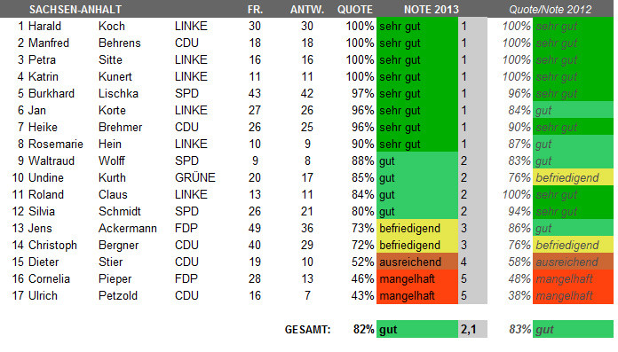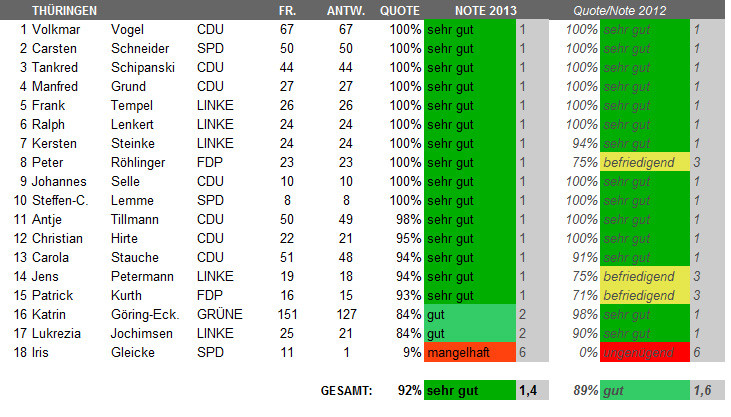 - 11.7.2013: Noten für die Bundestagsabgeordneten aus Sachsen, Sachsen-Anhalt und Thüringen nachgetragen.