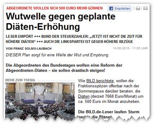 Vor einigen Tagen sah bild.de eine Wutwelle rollen. „Abgeordnete wollen sich 500 Euro mehr gönnen“, empörte sich das Portal „DIESER Plan sorgt für eine Welle der Wut und Empörung.“