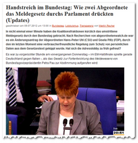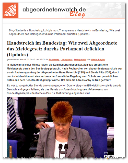Lesen Sie auch: "Handstreich im Bundestag: Wie zwei Abgeordnete das Meldegesetz durchs Parlament drückten" (9. Juli 2012)