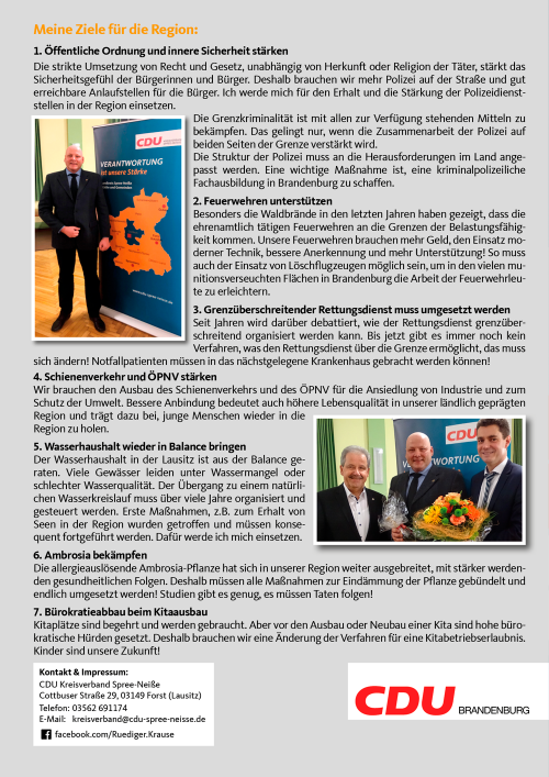 Die strikte Umsetzung von Recht und Gesetz, unabhängig von Herkunft oder Religion der Täter, stärkt das Sicherheitsgefühl der Bürgerinnen und Bürger. Deshalb brauchen wir mehr Polizei auf der Straße und gut erreichbare Anlaufstellen für die Bürger. Ich werde mich für den Erhalt und die Stärkung der Polizeidienststellen in der Region einsetzen.