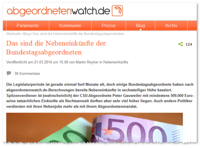 Das sind die Nebeneinkünfte der Bundestagsabgeordneten (21.3.2014)