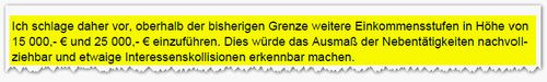 Vorschläge sind uns offiziell nicht bekannt. Bei der Einführung weiterer Stufen der Veröffentlichung ist – auch unter Berücksichtigung des Bruttozuflussprinzips – zu prüfen, in wie weit hierdurch größerer Erkenntnisgewinn bei der Frage möglicher Interessenkollisionen erzielt werden kann.