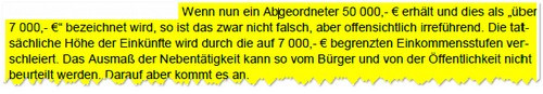 Die Einführung von zwei weiteren Stufen - 15.000 und 25.000 Euro - könnte zumindest für etwas mehr Klarheit sorgen. Konkret würde Oppermanns Vorschlag bedeuten, dass ein Abgeordneter, der für einen Vortrag oder einen Aufsichtsratsposten 30.000 Euro erhält, Einkünfte in Höhe von mindestens 25.000 Euro veröffentlichen müsste statt wie bislang 7.000 Euro. So ließe sich etwas genauer ermitteln, wie hoch die Bezüge unserer Bundestagsabgeordneten aus Nebeneinkünften sind. Außerdem ergäben sich Rückschlüsse darüber, ob bei einem Abgeordneten die Ausübung seines Bundestagsmandats tatsächlich im Mittelpunkt steht, wie es das Abgeordnetengesetz verlangt. Darauf weist auch Oppermann in seinem Brief an Bundestagspräsident Lammert hin: