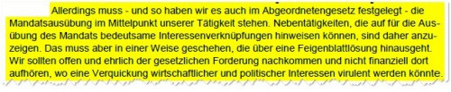 Alle Forderungen nach mehr Transparenz bei den Verhaltensregeln verdienen meine Unterstützung. Hierzu gehört insbesondere auch die die Einführung weiterer Einkommensstufen. Als Stufen sind die von Thomas Oppermann genannten denkbar – besser wäre jedoch eine noch weitere Aufspreizung in folgende Stufen: Stufe 3: 7.000 € bis 15.000 €, Stufe 4: 15.000 € bis 25.000 €, Stufe 5: 25.000 € bis 50.000 €, Stufe 6: 50.000 € bis 100.000 €, Stufe 7: ab 100.000 €.