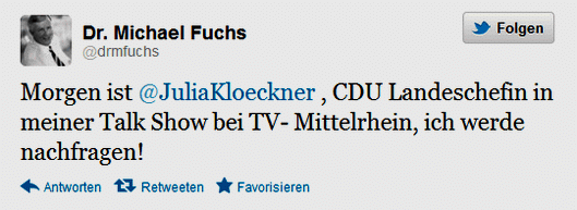 Update 4.5.2012: Der Regionalsender TV-Mittelrhein hat in seiner Sendung "Regional aktuell" am 11. April mit Michael Fuchs folgendes Telefoninterview zum Inhalt dieses Blogartikel geführt: