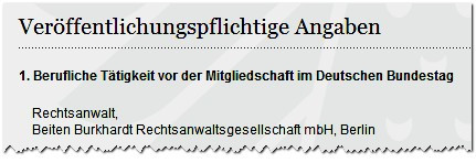 Merkwürdigerweise erweckt Martin Lindner auf der Bundestagshomepage den Eindruck, als sei er für "Beiten Burkhardt" bereits tätig gewesen, als er noch gar nicht im Bundestag saß: