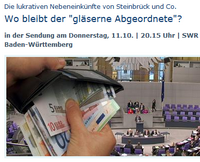 Nachtrag II: Der SPIEGEL hat bei einigen der von uns ausgemachten Top-Verdiener (s.oben) nachgefragt, was sie von mehr Transparenz bei der Höhe von Nebeneinkünften halten. In einer Vorabmeldung heißt es: