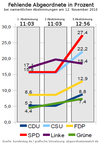 Nachtrag vom 14.11.2010: Eine interessante Erklärung für den Abgeordnetenschwund äußert "Frau Frings" in den Kommentaren auf unserer Facebookseite:
