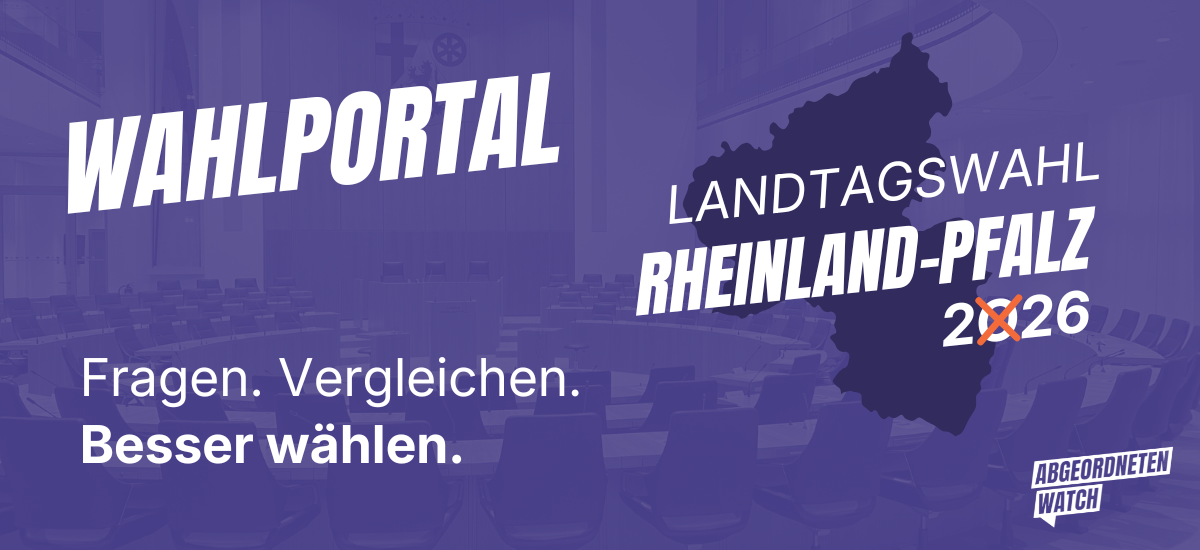 Fragen Sie Ihre Kandidierenden JavaScript muss aktiviert sein, um dieses Formular zu verwenden. PLZ oder Namen eingeben Stellen Sie Ihre Fragen und informieren Sie sich über Ihre Direktkandidierenden für die Landtagswahl in Rheinland-Pfalz! kandidierendencheck Landtagswahl Rheinland-Pfalz 2026 Wer tickt wie ich? Jetzt herausfinden Herzlich willkommen im Wahlportal zur Landtagswahl in Rheinland-Pfalz 2026!Hier findest Du:eine Übersicht über alle 404 Direktkandidierenden in den 52 WahlkreisenFragen & Antworten an die und von den Kandidierendendie Wahlprogramme der Parteien (sortiert nach Wahlergebnis der Wahl 2021, dann alphabetisch)Antworten auf die häufigsten Fragen rund um unsere Wahlangebote finden Sie in unserem FAQ.Die aktuellen Landtagsabgeordneten inkl. ihres Abstimmungsverhaltens sowie ihrer Ausschussmitgliedschaften kannst du hier nachschauen.Die Direktkandidierenden zur Landtagswahl Alexander Schweitzer SPD Angetreten für: SPDWahlkreis: 49 - Südliche Weinstraße Zum Profil Frage stellen Sabine Bätzing-Lichtenthäler SPD Angetreten für: SPDWahlkreis: 1 - Betzdorf / Kirchen (Sieg) Zum Profil Frage stellen Doris Ahnen SPD Angetreten für: SPDWahlkreis: 28 - Mainz II Zum Profil Frage stellen Clemens Hoch SPD Angetreten für: SPDWahlkreis: 11 - Andernach Zum Profil Frage stellen Christian Baldauf CDU Angetreten für: CDUWahlkreis: 35 - Frankenthal (Pfalz) Zum Profil Frage stellen Matthias Lammert CDU Angetreten für: CDUWahlkreis: 7 - Diez / Nassau Zum Profil Frage stellen Hendrik Hering SPD Angetreten für: SPDWahlkreis: 5 - Bad Marienberg (Westerwald) / Westerburg Zum Profil Frage stellen Lea Heidbreder BÜNDNIS 90/DIE GRÜNEN Angetreten für: BÜNDNIS 90/DIE GRÜNENWahlkreis: 50 - Landau in der Pfalz Zum Profil Frage stellen Gordon Schnieder CDU Angetreten für: CDUWahlkreis: 20 - Vulkaneifel Zum Profil Frage stellen Pia Schellhammer BÜNDNIS 90/DIE GRÜNEN Angetreten für: BÜNDNIS 90/DIE GRÜNENWahlkreis: 32 - Rhein-Selz / Wonnegau Zum Profil Frage stellen Jennifer Groß CDU Angetreten für: CDUWahlkreis: 6 - Montabaur Zum Profil Frage stellen Stephan Wefelscheid FREIE WÄHLER Angetreten für: FREIE WÄHLERWahlkreis: 9 - Koblenz Zum Profil Frage stellen Zu allen Kandidierenden